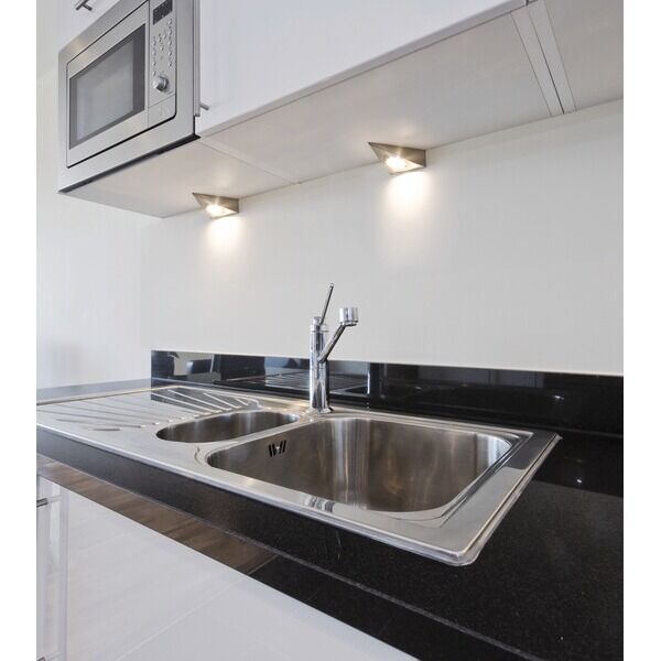 - Inbouwspots in keuken of badkamer boven werkblad en wastafel voor helder werklicht
