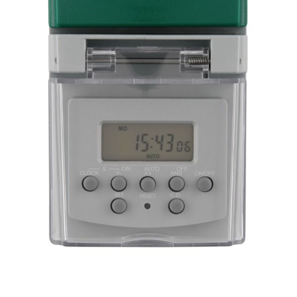 Automatiseer je tuinverlichting en andere apparatuur met deze digitale tijdschakelklok. Geen handmatige schakelaars meer nodig; deze klok doet het werk voor je. Dankzij het spatwaterdichte ontwerp (IP44) is deze klok bestand tegen alle weersomstandigheden en kan hij het hele jaar door buiten blijven.