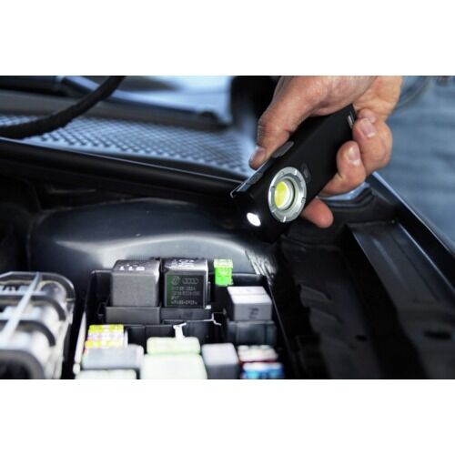 Deze werklamp heeft geavanceerde COB-LED technologie die zorgt voor een intens helder licht van maximaal 1200 lumen. De lamp heeft een indrukwekkend bereik van 45 meter en kan tot 10 uur continu branden op één lading. Met drie helderheidsniveaus (laag, midden, hoog) kun je de lichtsterkte aanpassen aan elke situatie. Bovendien is er een handige Top-LED aanwezig.