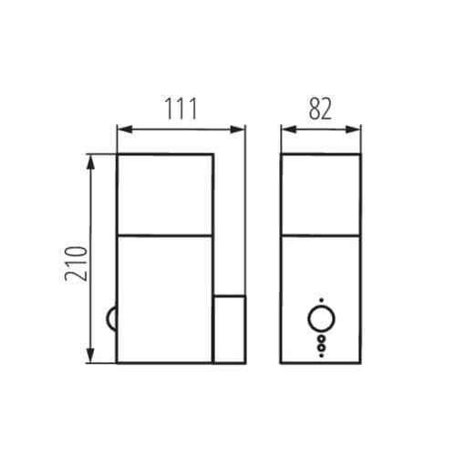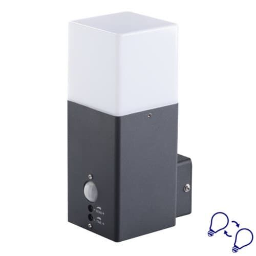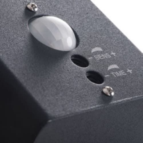 Ontworpen voor wandmontage, biedt deze lamp een bovenwaartse stralingshoek van 180°. De sensor kan worden ingesteld voor een bereik tot 7 meter met een detectiehoek van 90°. De uitschakeltijd is aanpasbaar van 10 seconden tot 4 minuten.