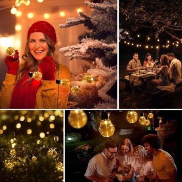 Het verlichte gedeelte met de LED bollen is 2 meter lang, met een afstand van 15 cm tussen de lampen. De lichtslinger is spatwaterdicht met een IP44-classificatie, waardoor hij ideaal is voor buitengebruik.