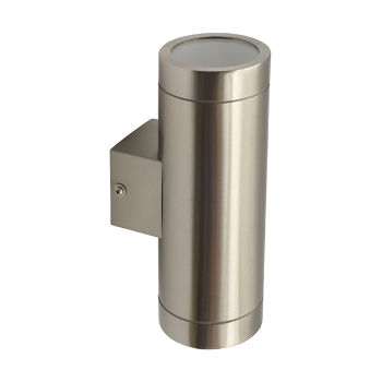 Deze muurlamp is geschikt voor een lampen tot maximaal 35 Watt en daarmee uitermate geschikt voor LED GU10 lampen! De armatuur is gemaakt van aluminium met een roestvrij staal-look en voorzien van gehard glas. Het betreft een dubbele muurlamp, dus de schijnrichting is naar boven en naar onder. Het is een decoratief product voor de verlichting van muren en entrees, of gewoon bij de voor- of achterdeur. De armatuur is spatwaterdicht (IP44) en dus geschikt voor buiten. GU10 fittingen meegeleverd.